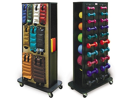Consists of: (1) 5566 Rack, (1) 5581 Set of (16) Hugger® Weights, (2) 5505 Sets of (10) each 1 to 10 lbs. Dumbbells, (1) Set of 5531 Set of (5) REP Bands™, (1) 5539 Set of (3) Weight Bars (1 lb., 2 lb., 3 lb.)