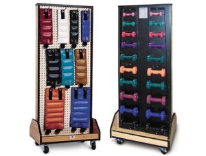 (1) 5562 Mega-Rack, (1) 5581 Set of (16) Hugger® Weights, (2) 5505 Sets of (10) Dumbbells each, (1) 5531 Set of (5) REP Bands™, (1) 5539 Set of (3) Weight Bars